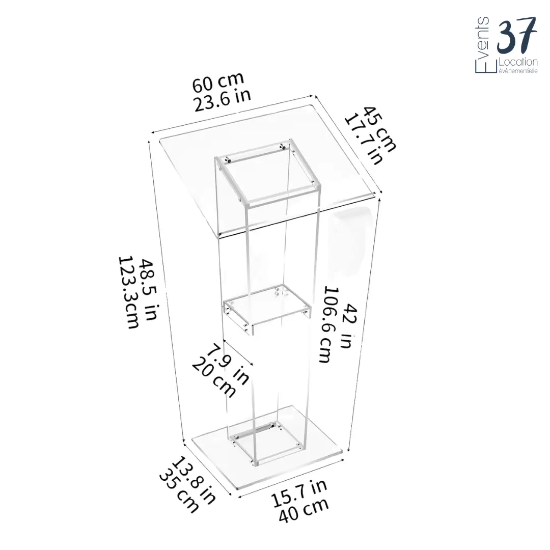 Type : Pupitre sur pied, pliable, réglable en hauteur.